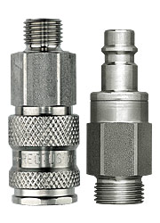 TechnikEuro Industrieprofil 3/8“ – 1/2“ mit UltraFlo-Technologie. Hohe Durchflussleistung. Zeichnet sich durch robuste Bauweise und Stahlentriegelungshülse im Einsatz mit großen pneumatischen Verbrauchern aus. Einsatz mit flüssigen und aggressiven Medien.